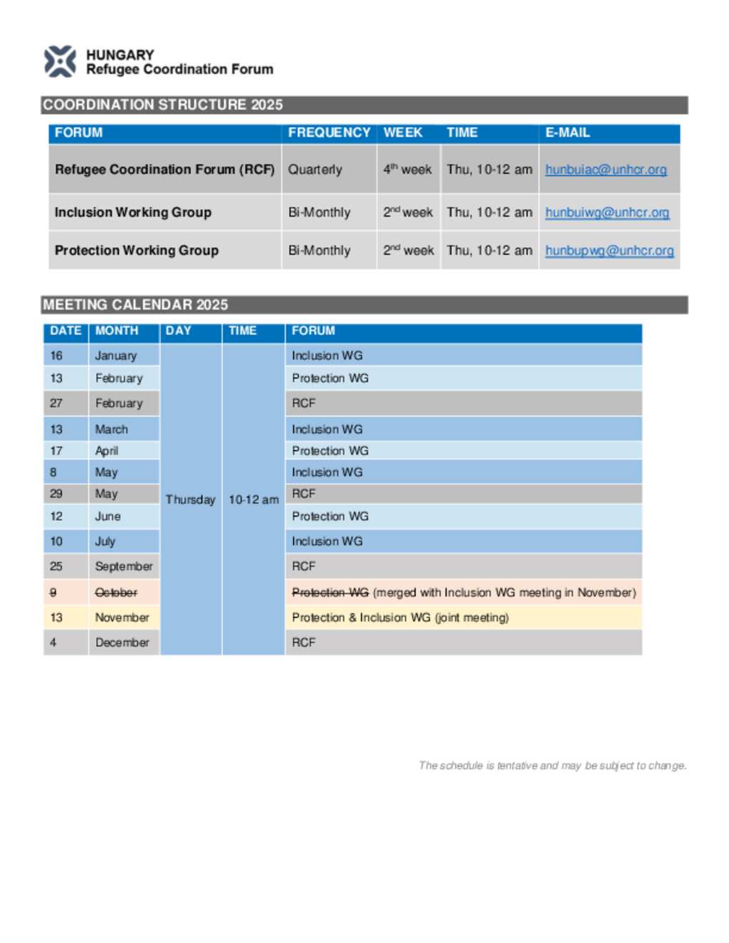 Hungary: 2025 Menekültügyi Koordinációs Struktúra és naptár / 2025 Refugee Coordination structure and calendar