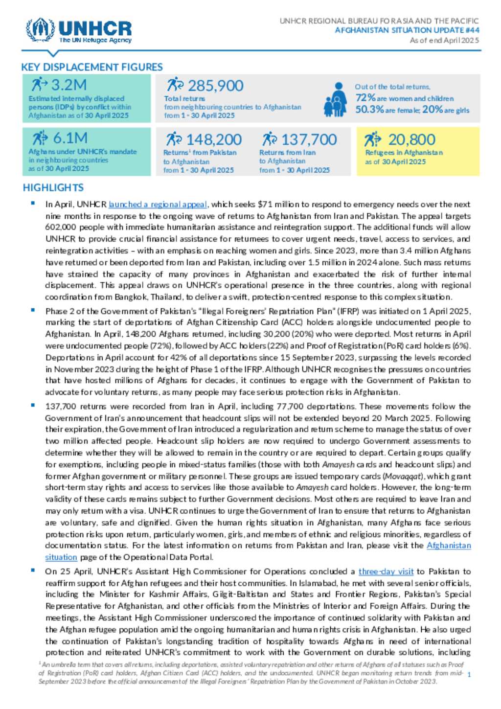 UNHCR Afghanistan Situation Regional Update - 30 April 2025