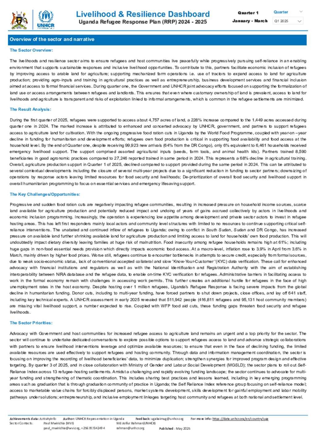 Uganda Refugee Response: Livelihoods and Resilience dashboard Quarter 1 2025
