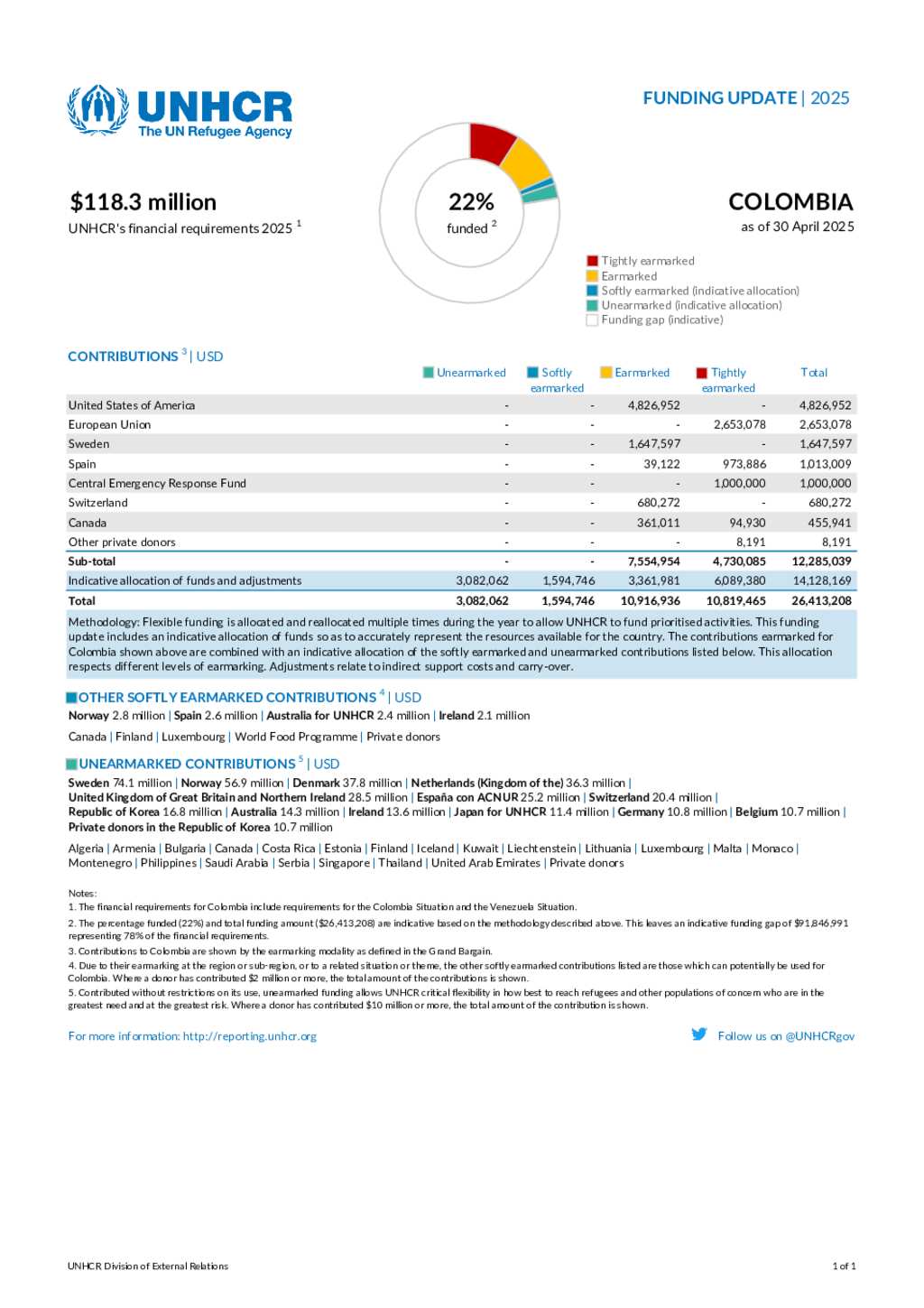 UNHCR Colombia | Funding Update (April 2025)