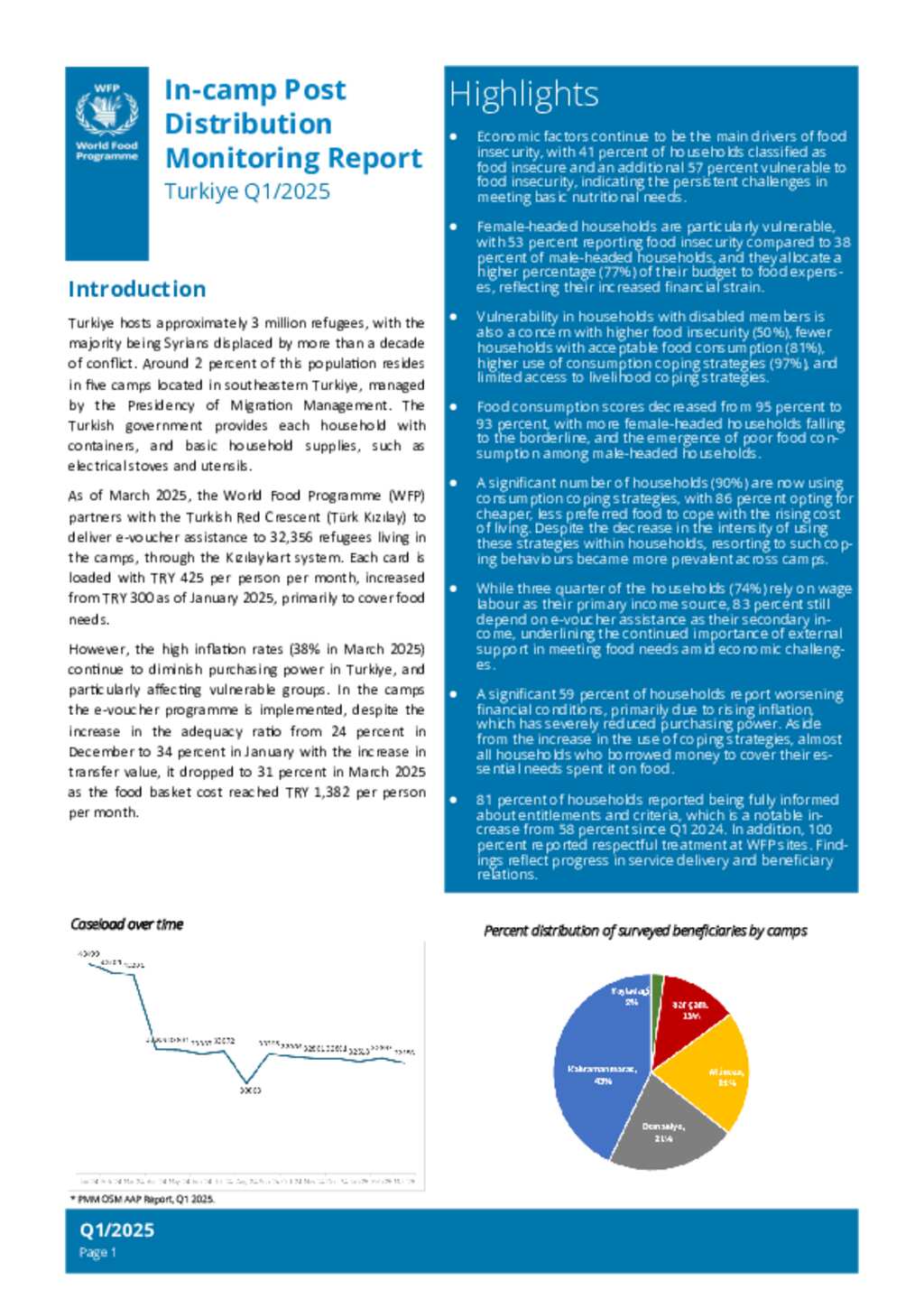 Türkiye - WFP: In Camp Post Distribution Monitoring Report - Q1/2025