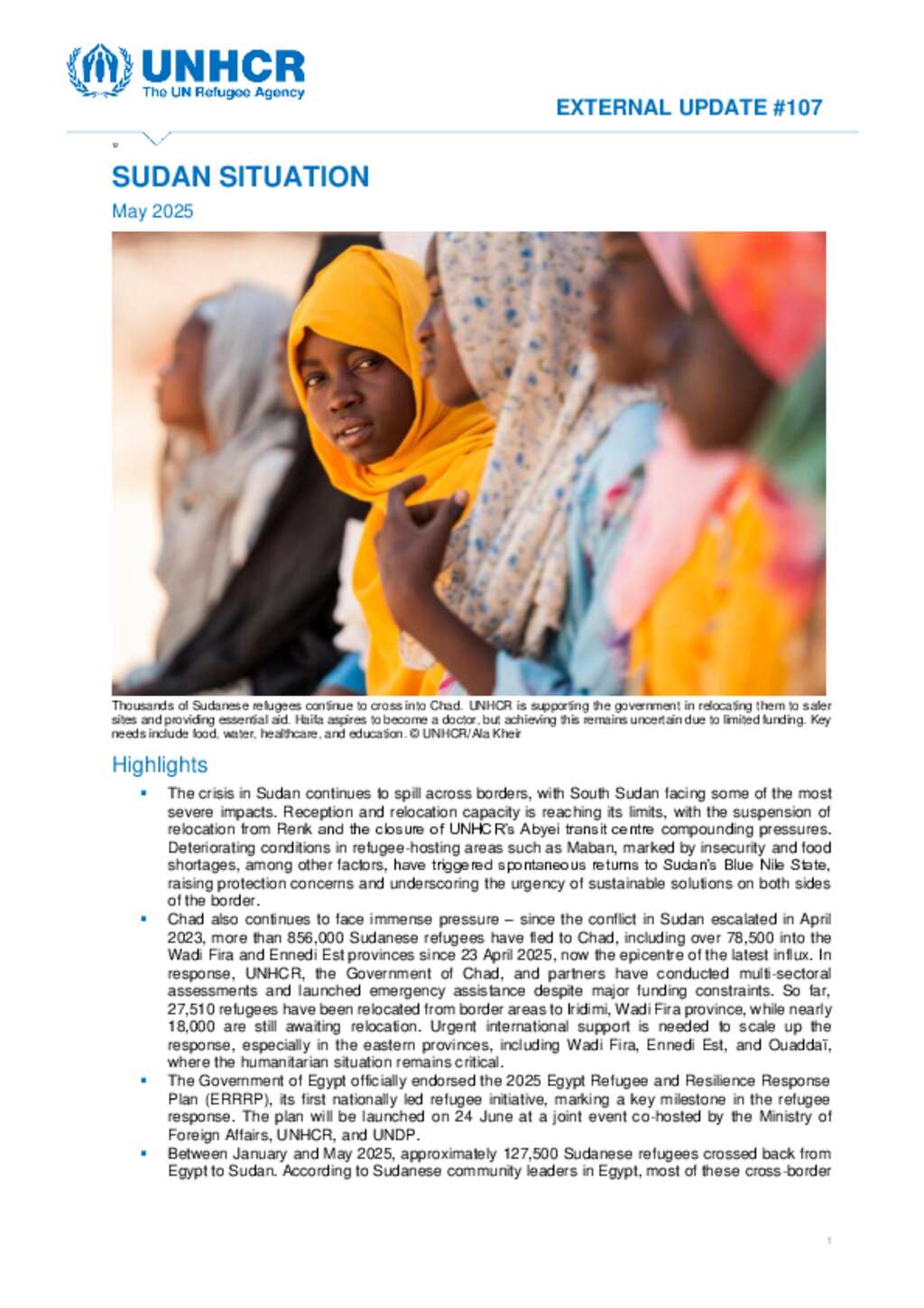 Sudan Situation: UNHCR Monthly External Update #107 - May 2025