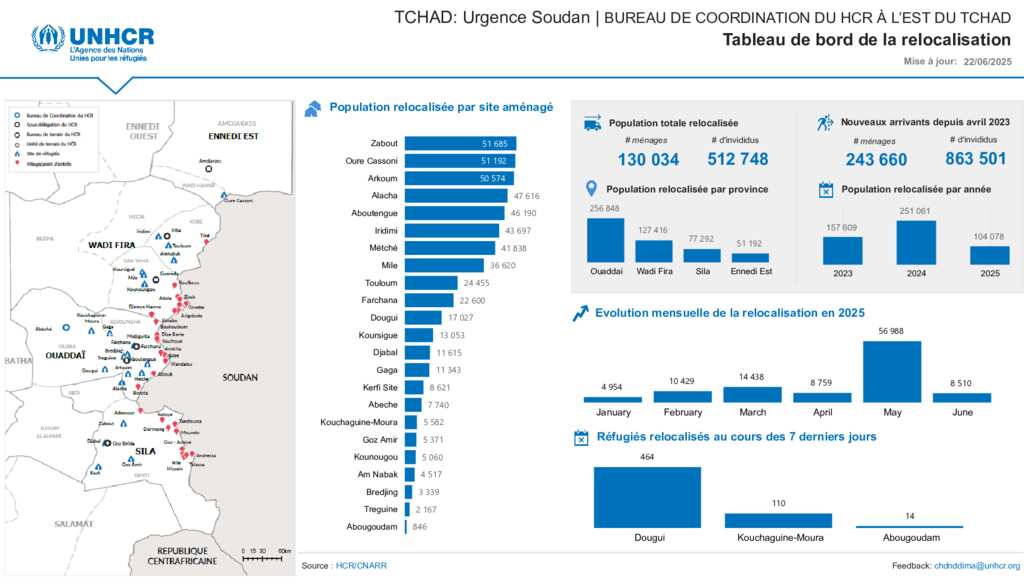 UNHCR TCHAD| Tableau de bord de la relocalisation(22 JUIN 2025)