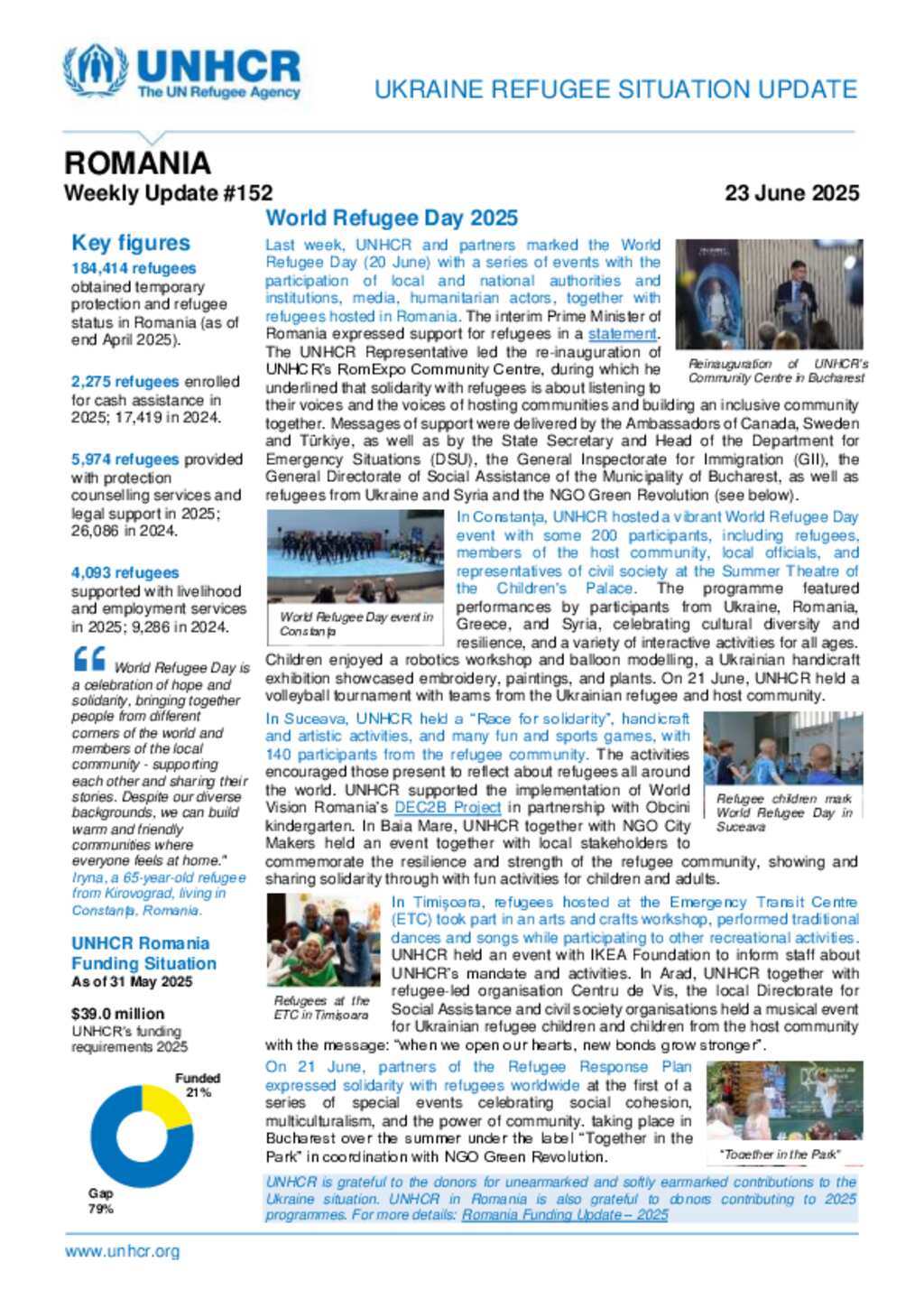 UNHCR Romania Ukraine Refugee Situation Update - 23 June 2025