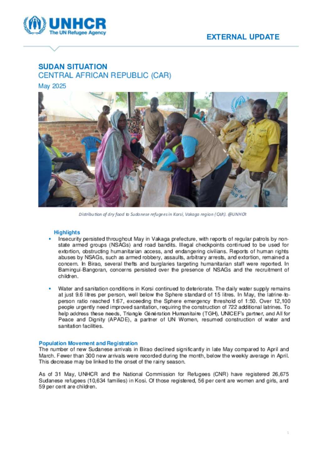 Sudan Situation: UNHCR External Update: May 2025