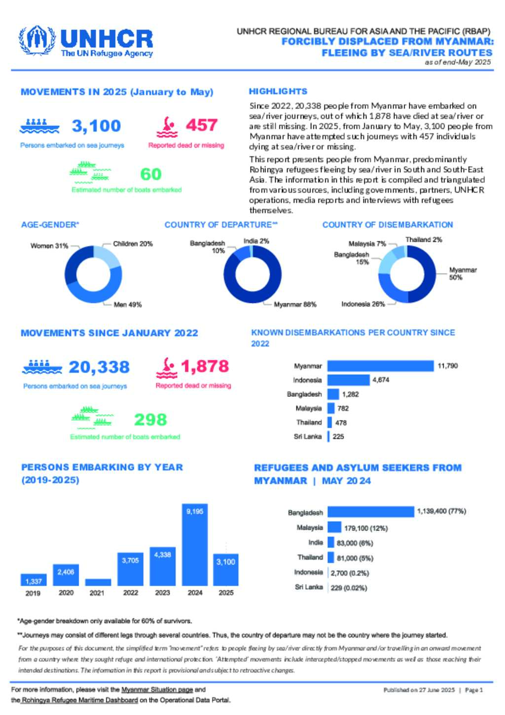 Myanmar forcibly displaced fleeing by sea/river routes in 2025 (end-May update)