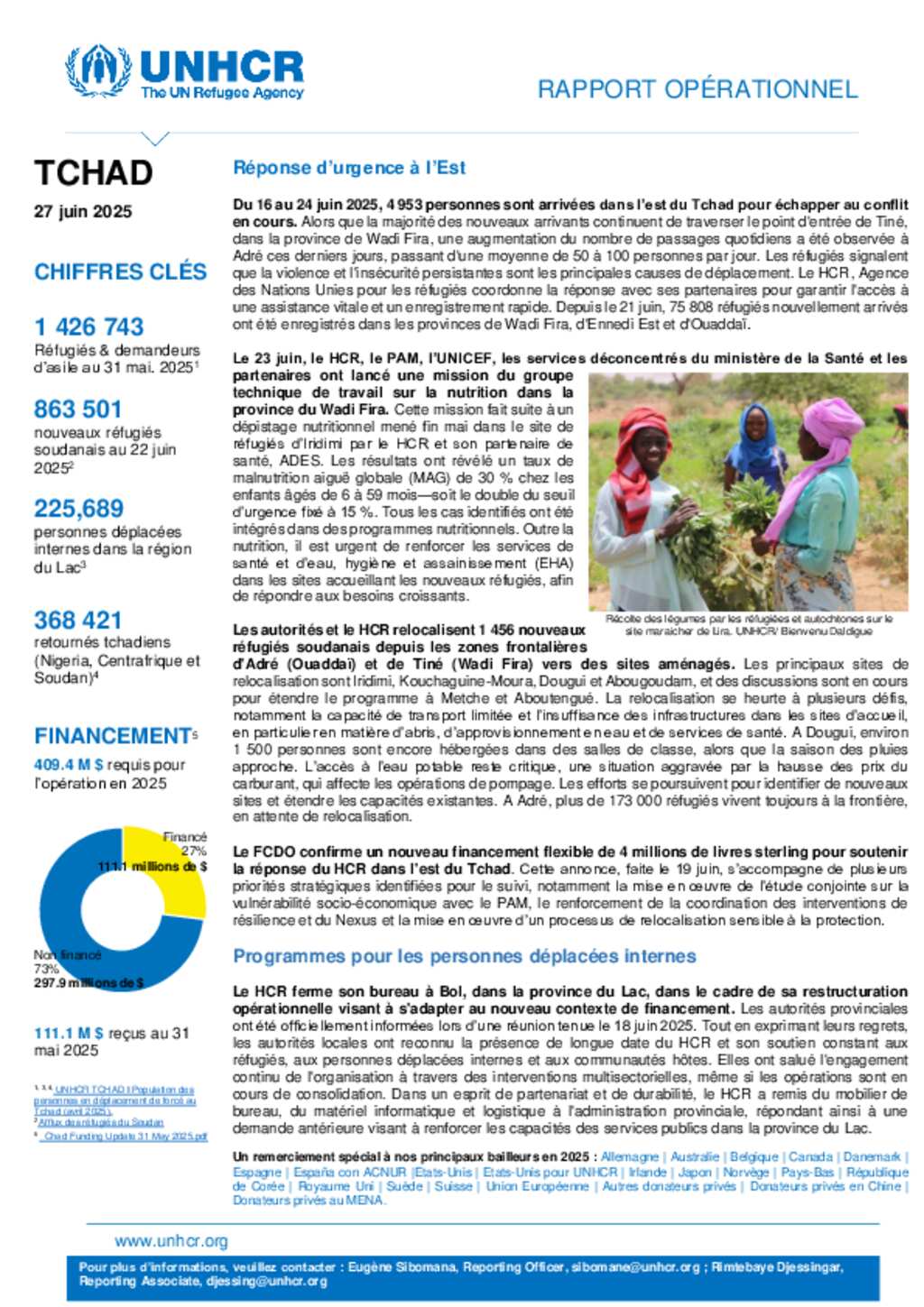 HCR TCHAD | Rapport opérationnel hebdomadaire du 27 juin 2025