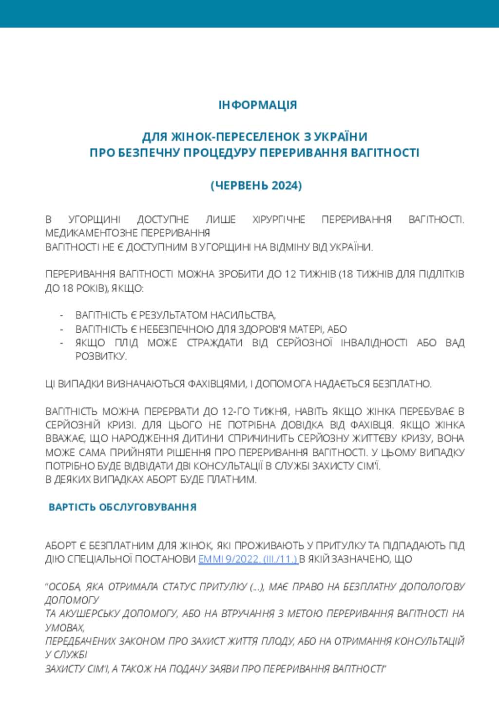 Hungary: ДЛЯ ЖІНОК-ПЕРЕСЕЛЕНОК З УКРАЇНИ ПРО БЕЗПЕЧНУ ПРОЦЕДУРУ ПЕРЕРИВАННЯ ВАГІТНОСТІ (червень 2024 року)
