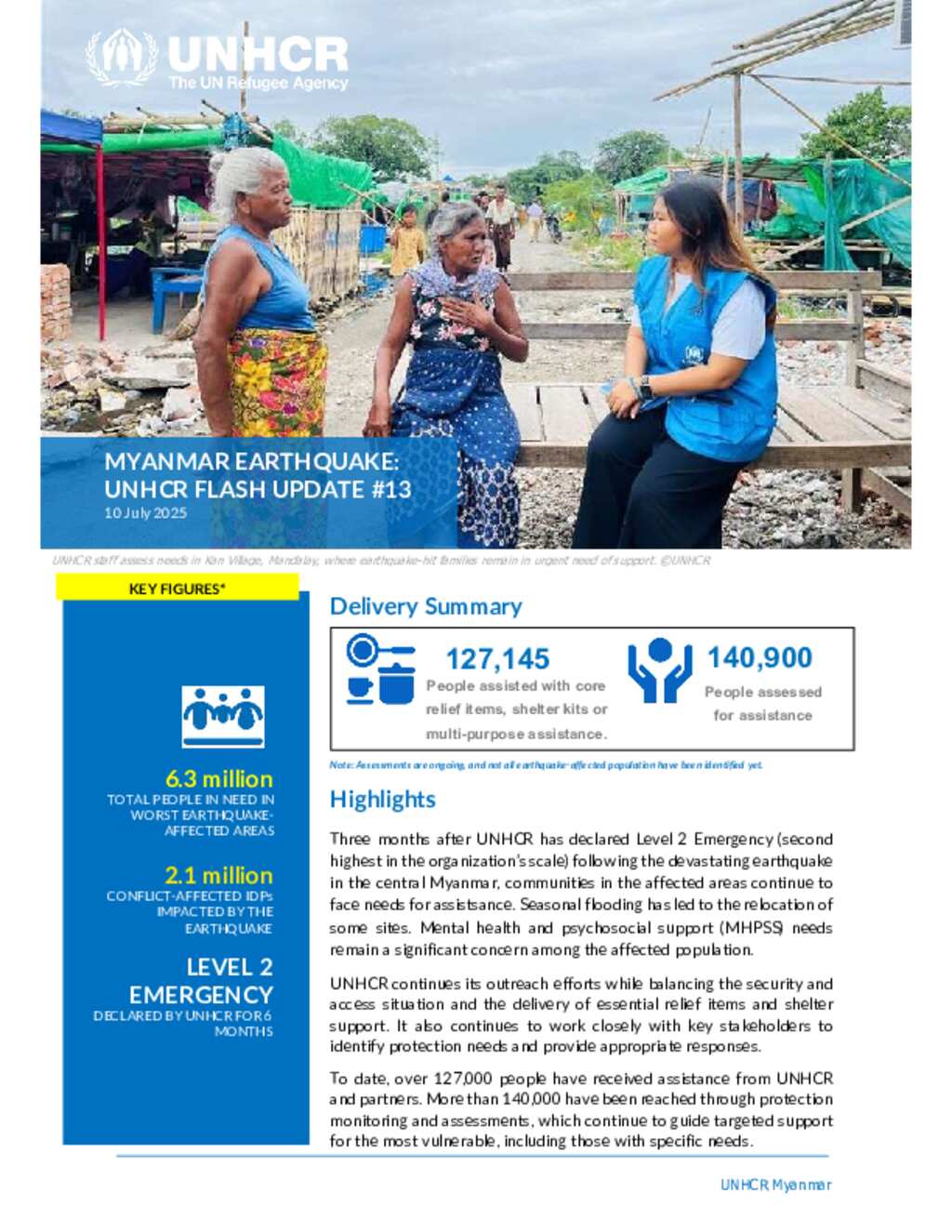 UNHCR Flash Update on Earthquake in Myanmar #13 - 10 Jul 2025