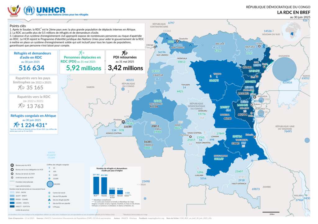 Personnes en mouvement forcé en RDC en un coup d'œil au 30 juin 2025