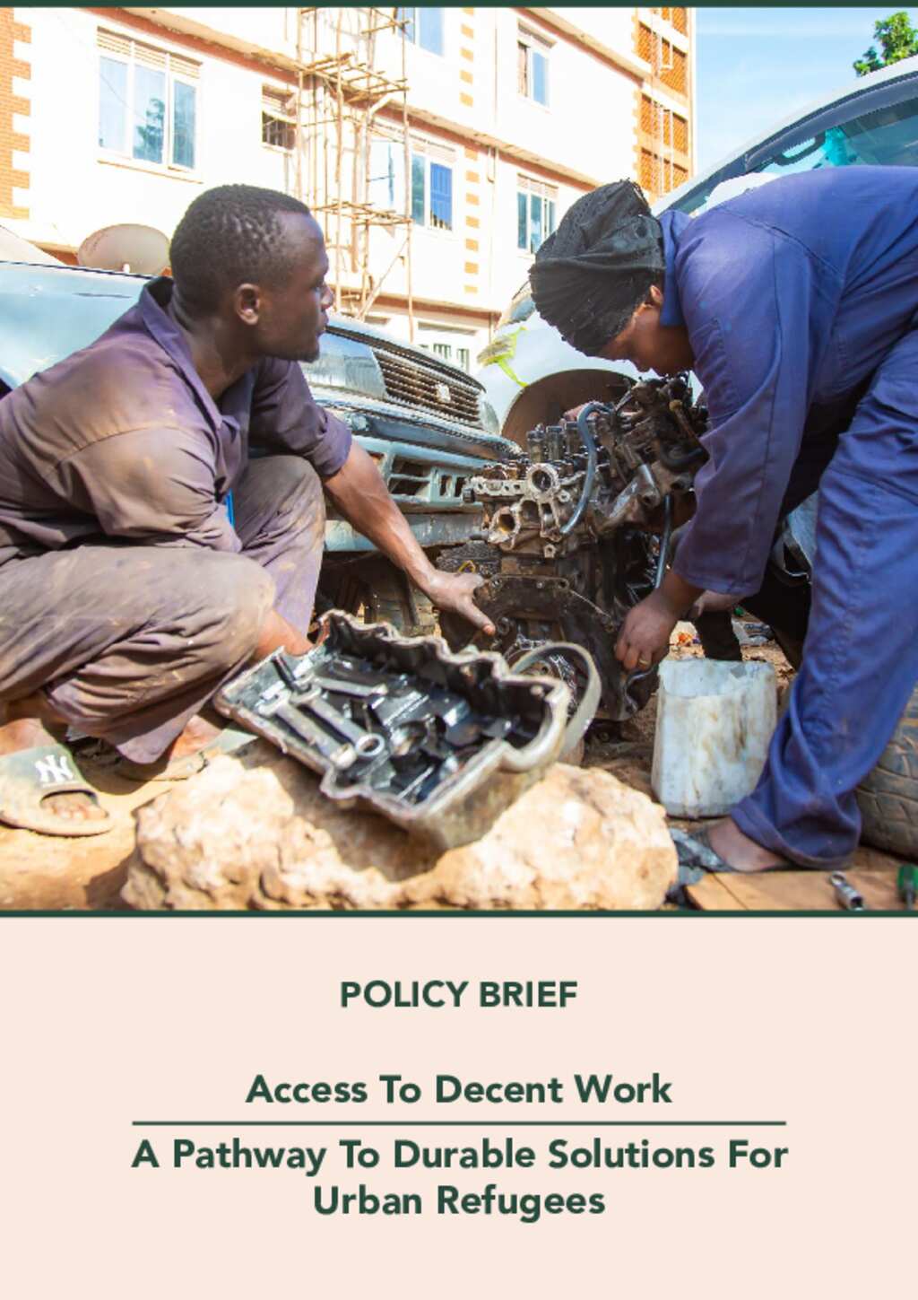 This policy brief addresses the issue of access to decent work for urban refugees in Nairobi and Kampala and provides recommendations to overcome the challenges they face. Urban refugees, unlike those in camps, are expected to achieve economic self-reliance, but face challenges limiting access to employment opportunities, aggravated by barriers associated with their refugee status. The policy brief highlights current policy regulations and initiatives while identifying key barriers and proposing solutions. Existing policies at the global, regional, and national levels guarantee refugees’ right to work and promote self-reliance. However, implementation has been slow and fragmented, resulting in a lack of awareness among both the private sector and refugees themselves. Lengthy bureaucratic processes for obtaining work permits and refugee identification documents create delays and push refugees into the informal sector or illegal work, exposing them to exploitation and abuse.