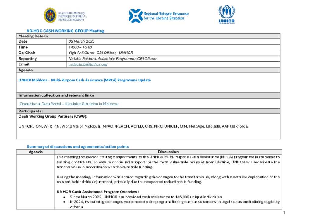 Ukraine Situation - Moldova: Cash Working Group Meeting Minutes (5 March 2025)