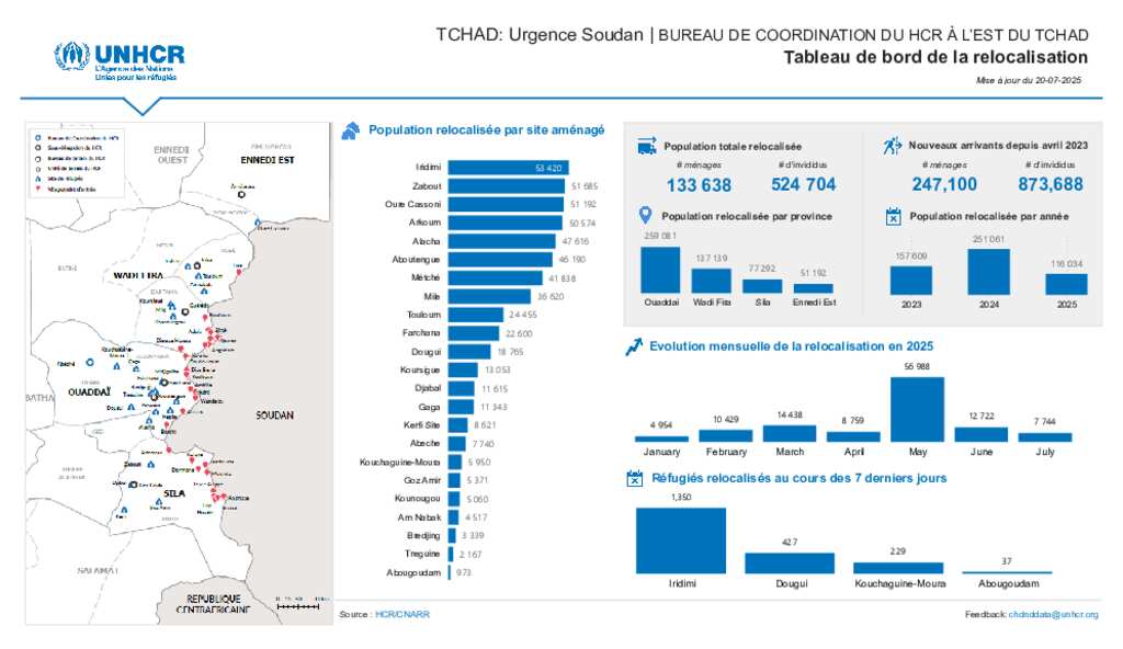 UNHCR TCHAD| Tableau de bord de la relocalisation(21 Juillet 2025)