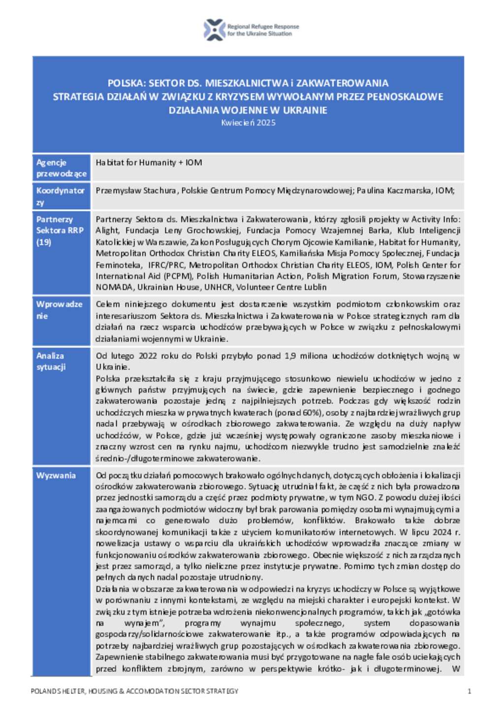 Poland: Shelter, Housing & Accommodation Sector Strategy for the Ukraine Response 2025-2026 (PL)