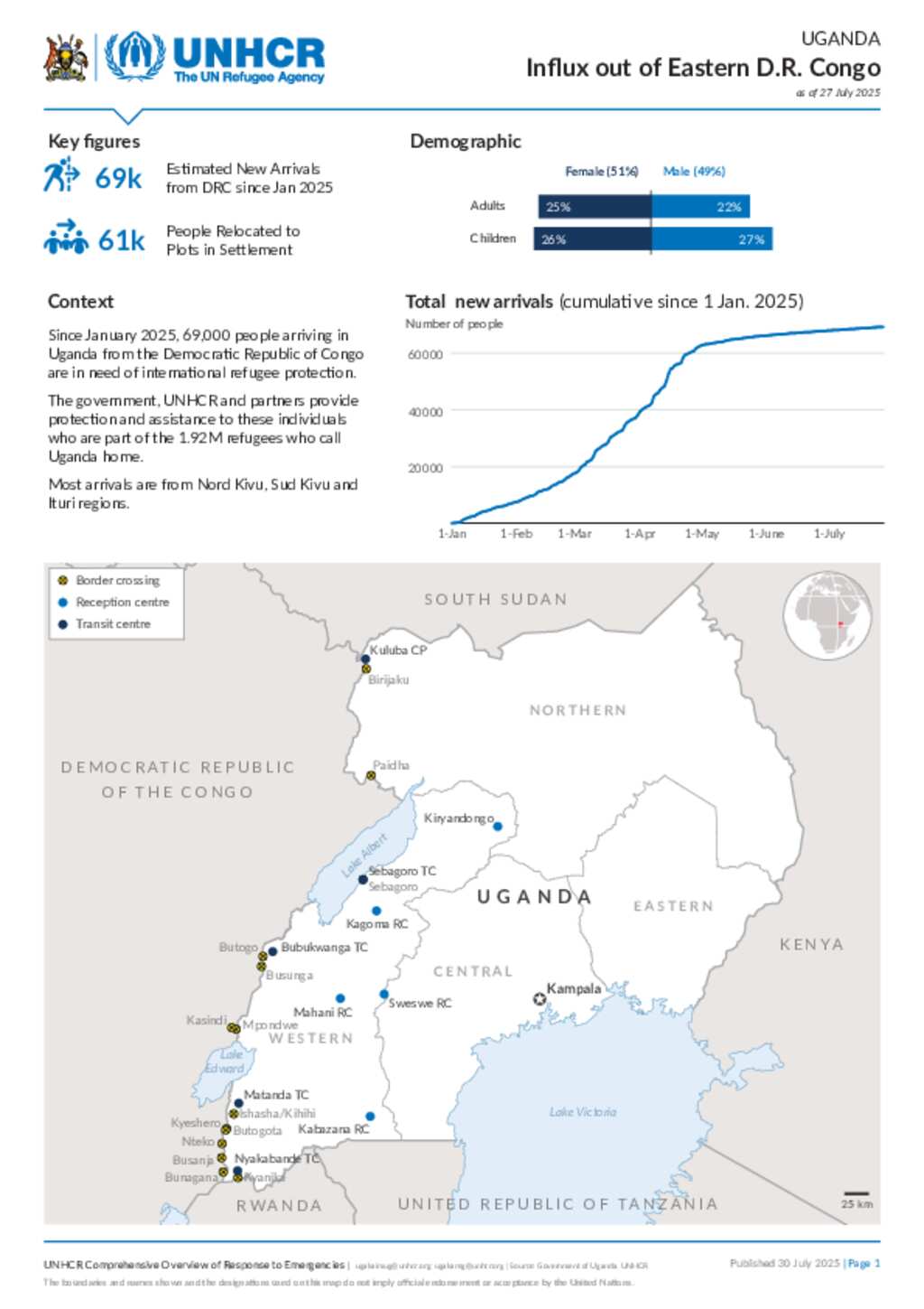 Uganda: Influx out of Eastern D.R. Congo - 27 July 2025