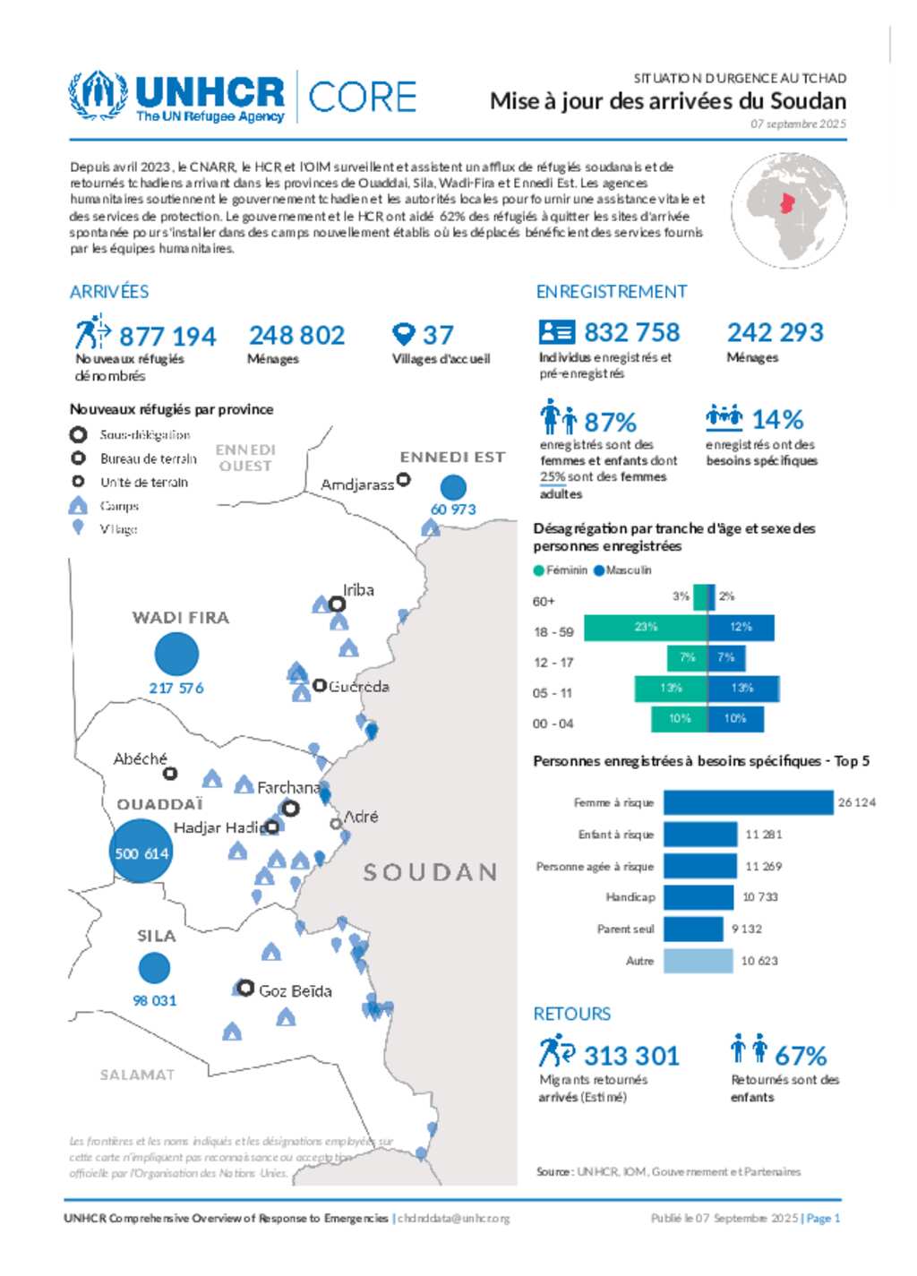 UNHCR CHAD| CORE Situation d'urgence des Réfugiés Soudanais (07 septembre 2025)