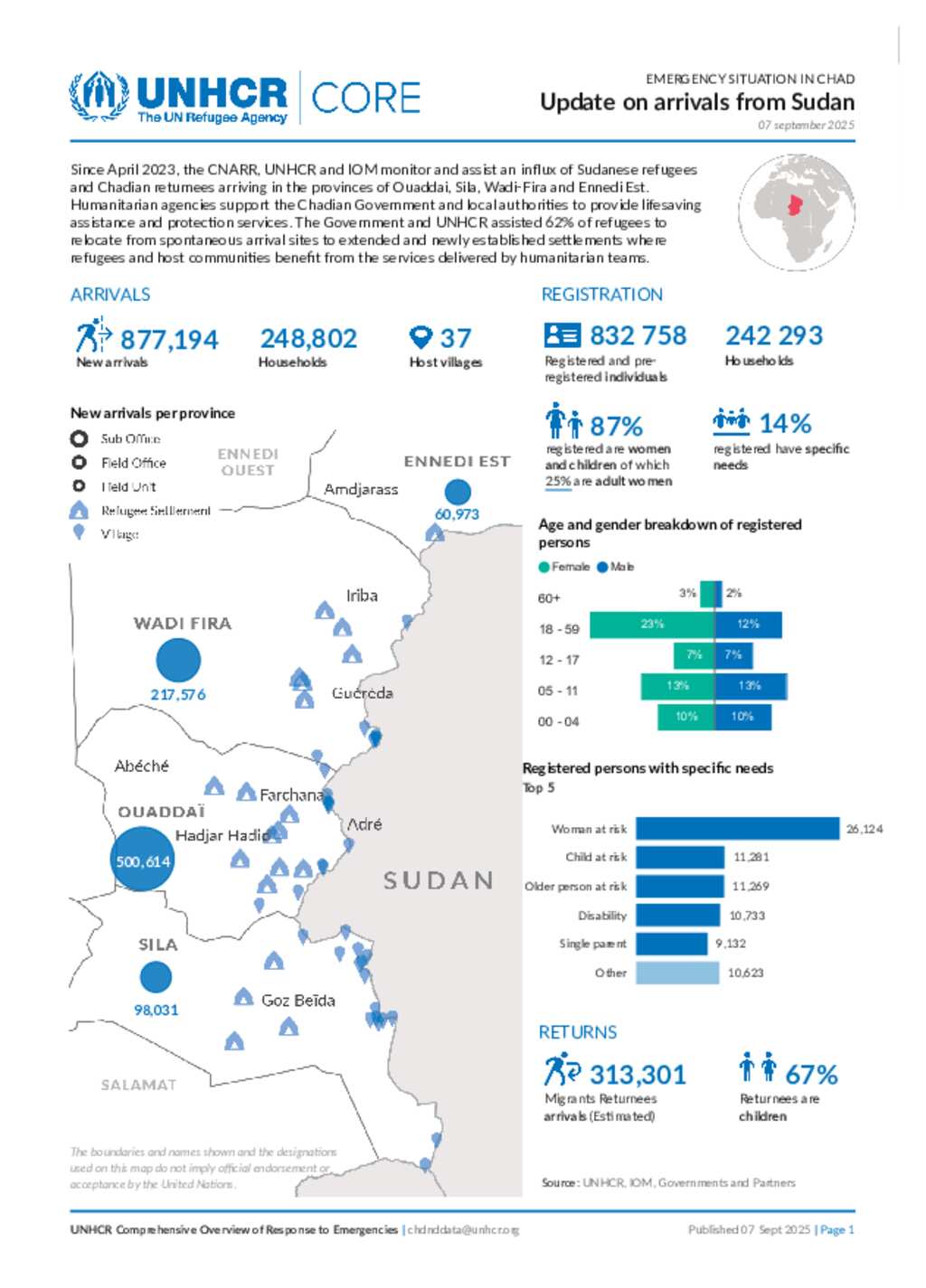 UNHCR CHAD| CORE Sudan Emergency Situation (07 september 2025)