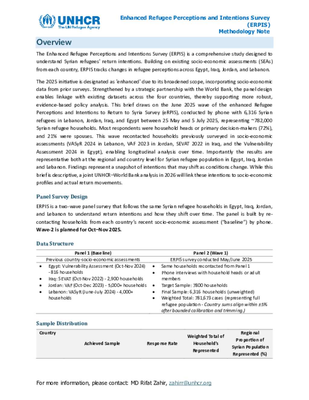 Enhanced Refugee Perceptions and Intentions Survey (ERPIS) Methodology Note