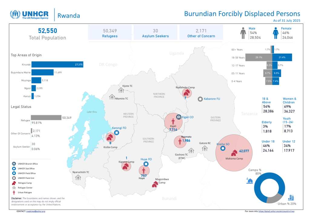 UNHCR Rwanda - Burundian Forcibly Displaced Population Figures - 31 July 2025