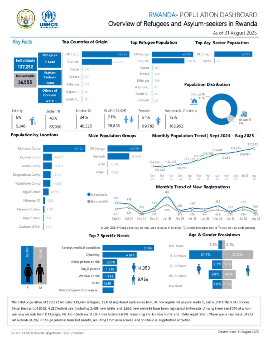 UNHCR Rwanda - Population Statistics Dashboard - 31 August 2025
