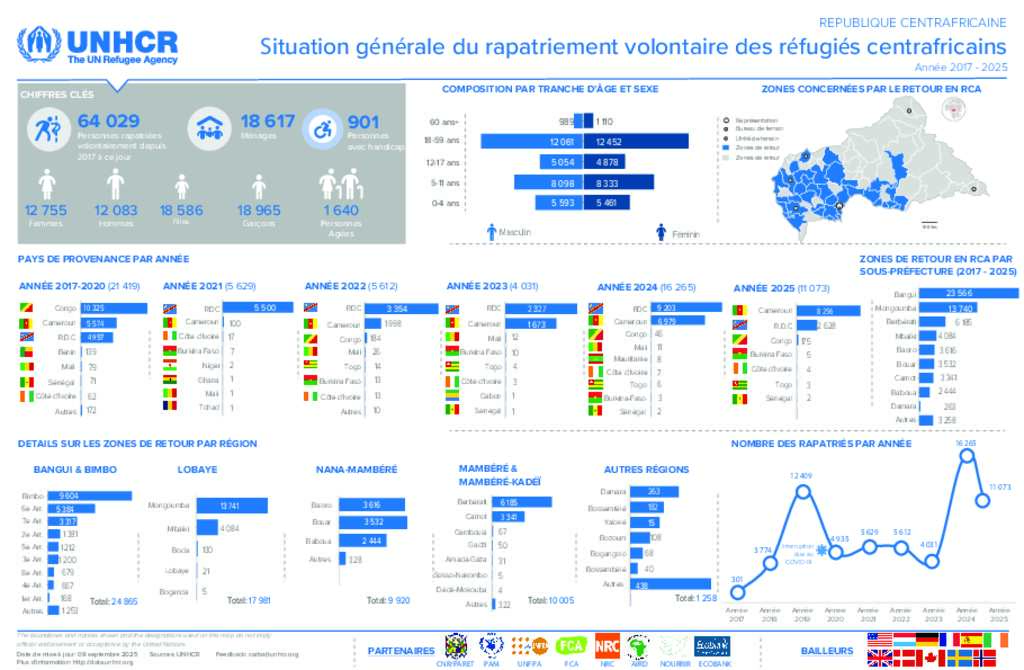Rapatriement volontaire des réfugiés centrafricains : Année 2017 - 31 Aout 2025