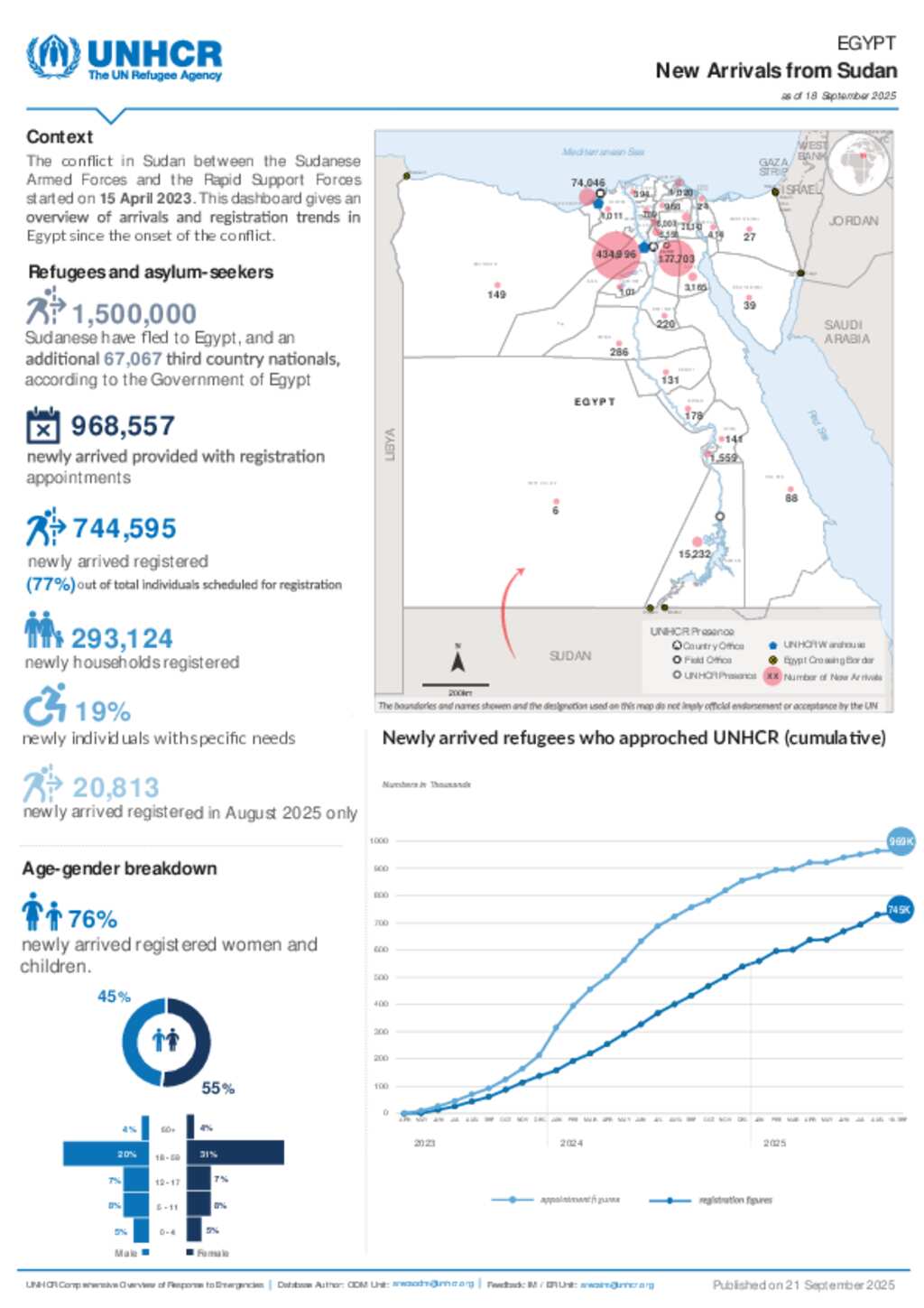 Egypt: New Arrivals from Sudan as of 18 September 2025
