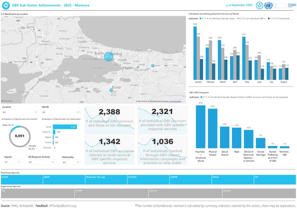 Türkiye: GBV Sub-Sector Dashboard - Marmara - August 2025