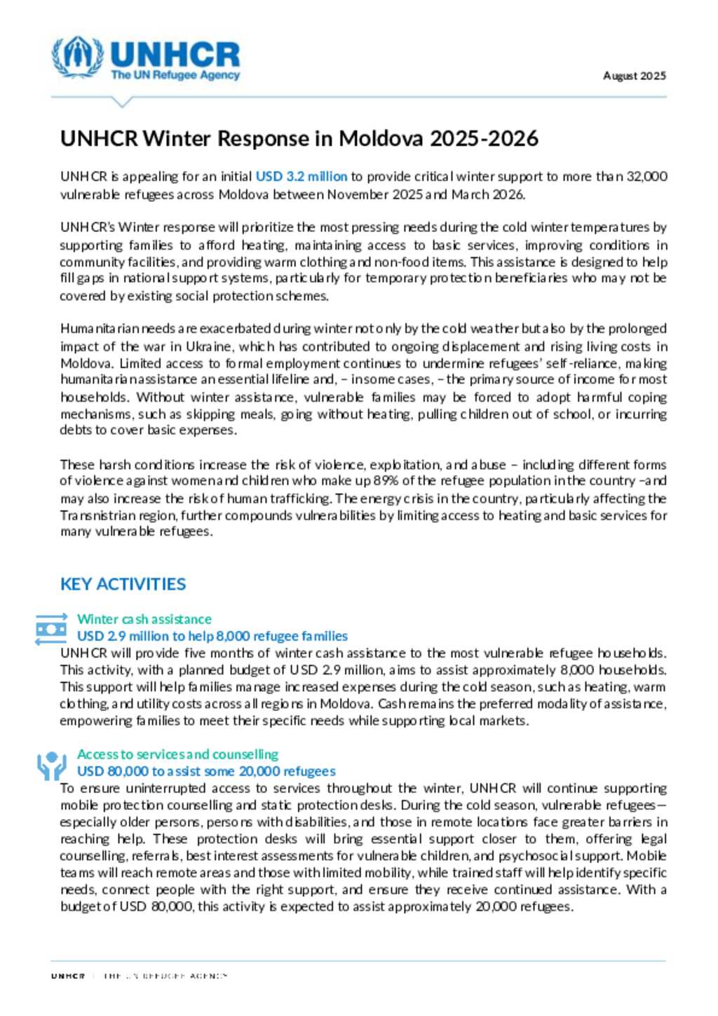Ukraine Situation - Moldova: UNHCR Moldova 2025-2026 Winter Appeal