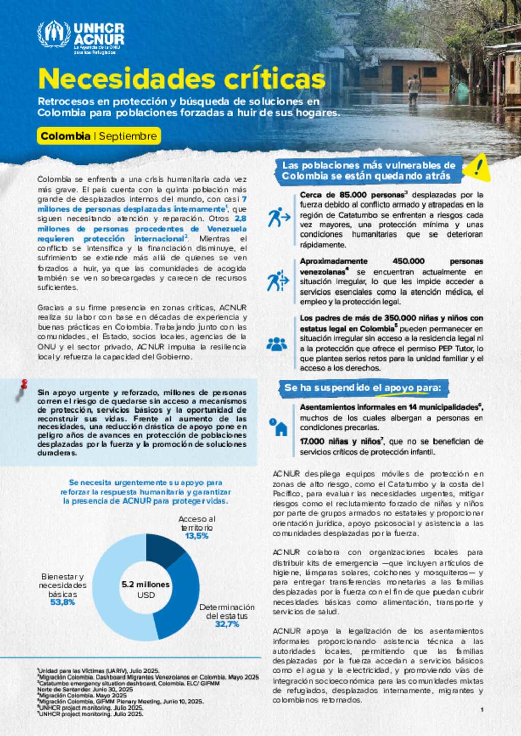 Necesidades críticas | Proteger y encontrar soluciones en Colombia para las poblaciones obligadas a huir de sus hogares