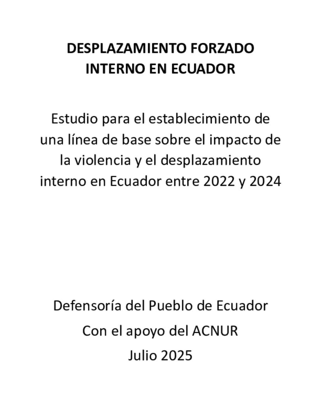 La Defensoría del Pueblo de Ecuador realizó este ejercicio con el fin de establecer una línea de base sobre el impacto de la violencia y el desplazamiento interno en Ecuador entre 2022 y 2024, con el apoyo de ACNUR.