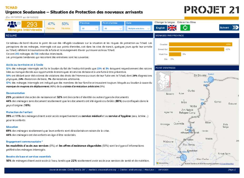 P21 - TCHAD| Dashboard Résultats Préliminaires Monitoring Urgence soudanaise (03 - 09 Oct 2025 FR)