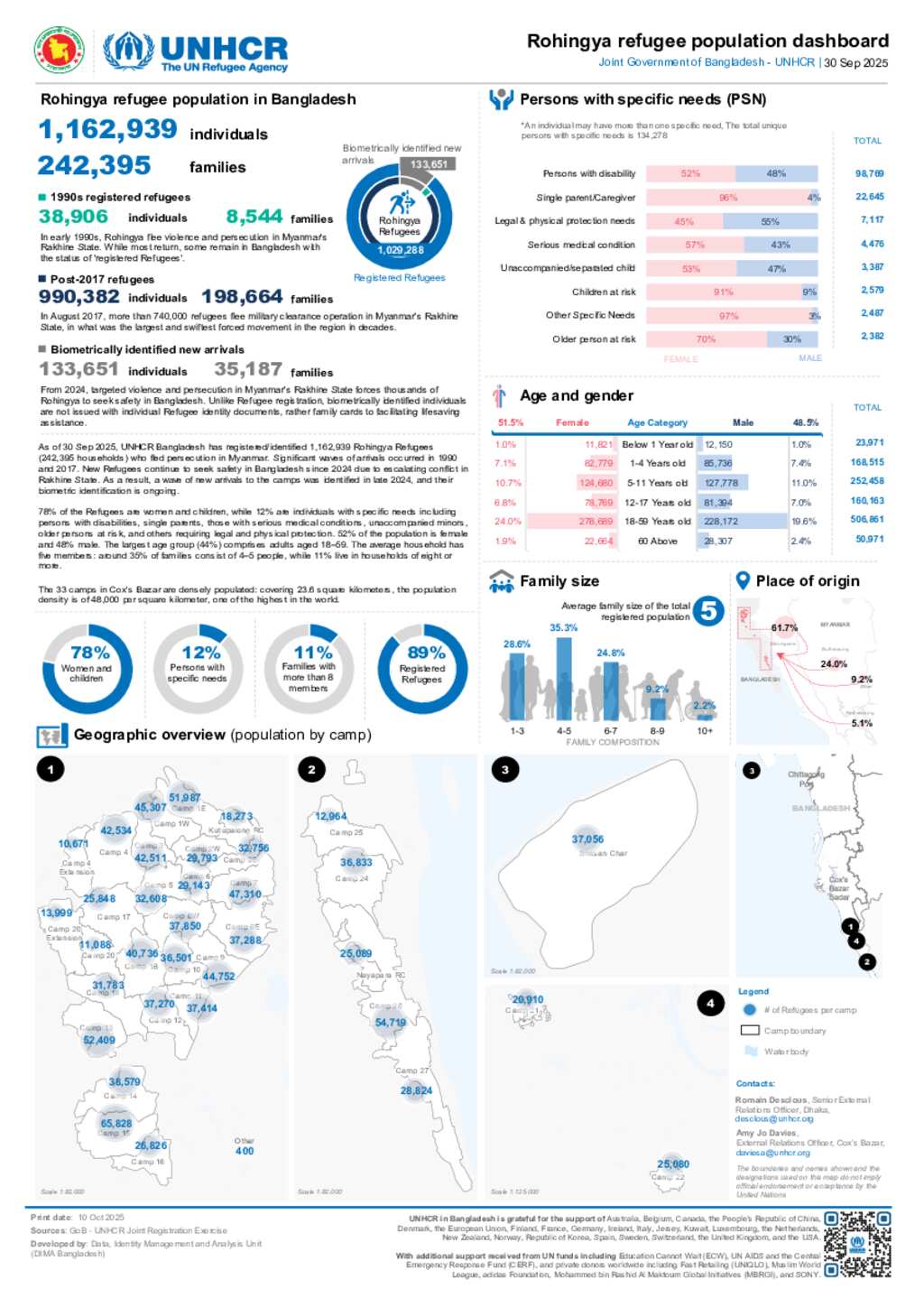 Joint Government of Bangladesh - UNHCR Population Dashboard as of September 2025