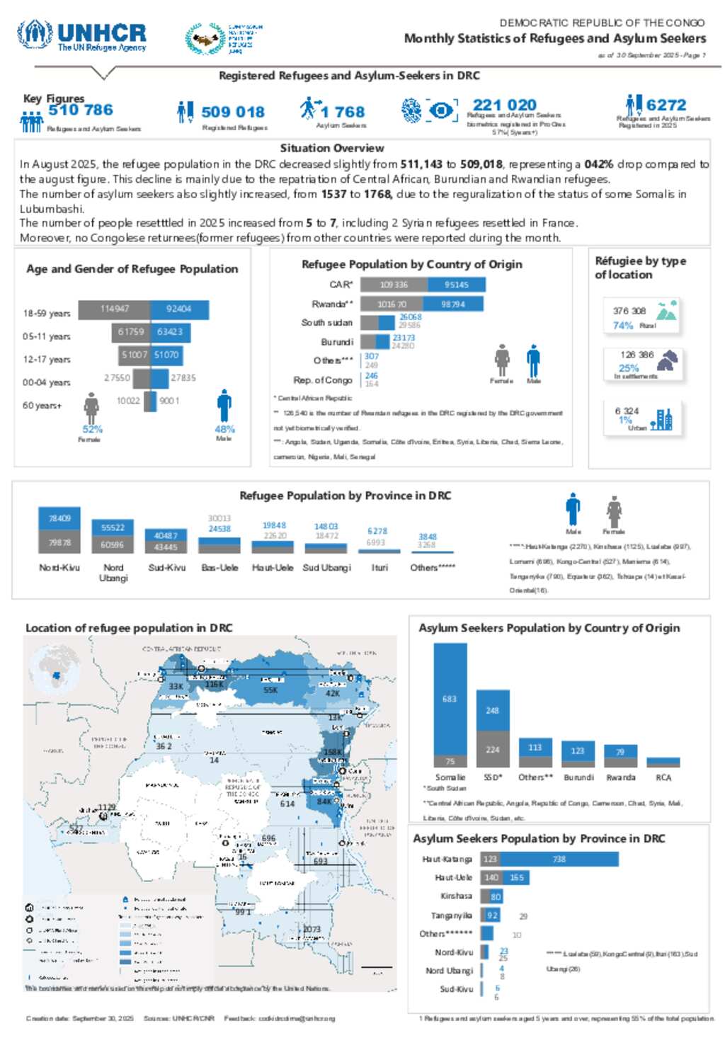 Statistics of Refugees and Asylum Seekers in DRC as of 30 September 2025