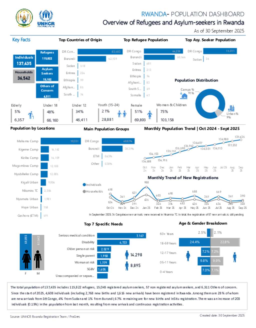 UNHCR Rwanda - Population Statistics Dashboard - 30 September 2025