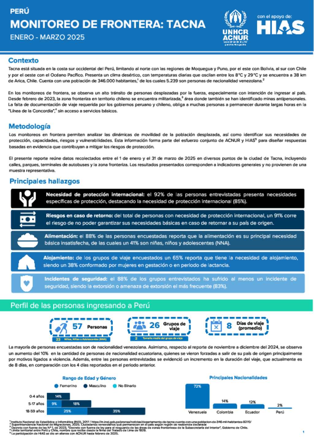 Monitoreo de Frontera Tacna, Perú: Enero - Marzo 2025