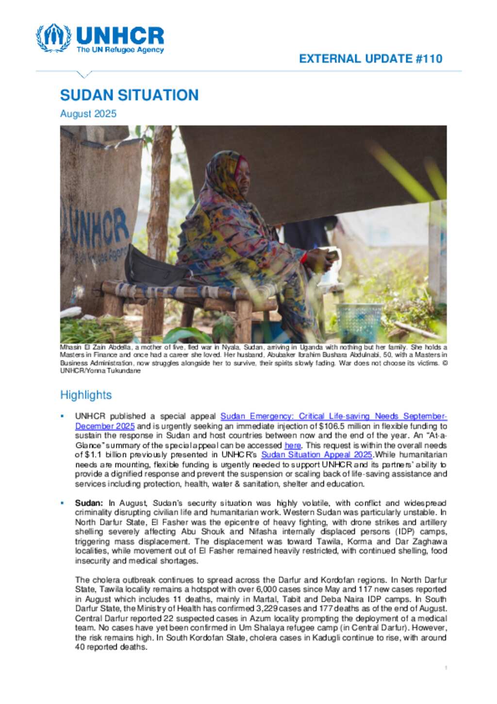 Sudan Situation: UNHCR Monthly External Update #110 - August 2025