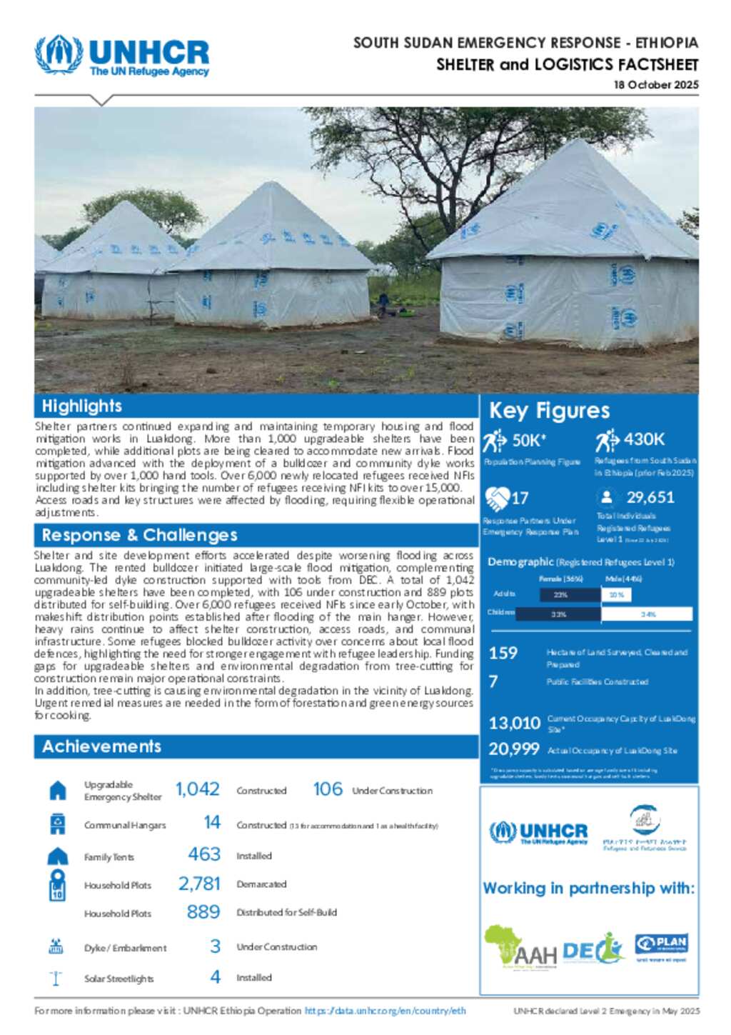 UNHCR Ethiopia | Thematic Factsheet - Shelter | 18 October 2025