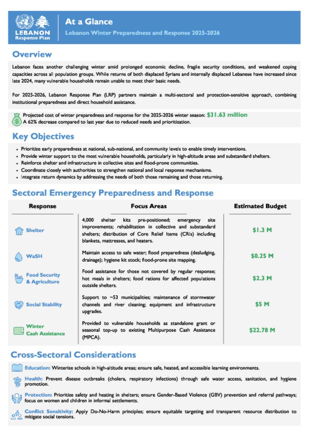 Lebanon: At a Glance - Winter Preparedness & Response 2025-2026
