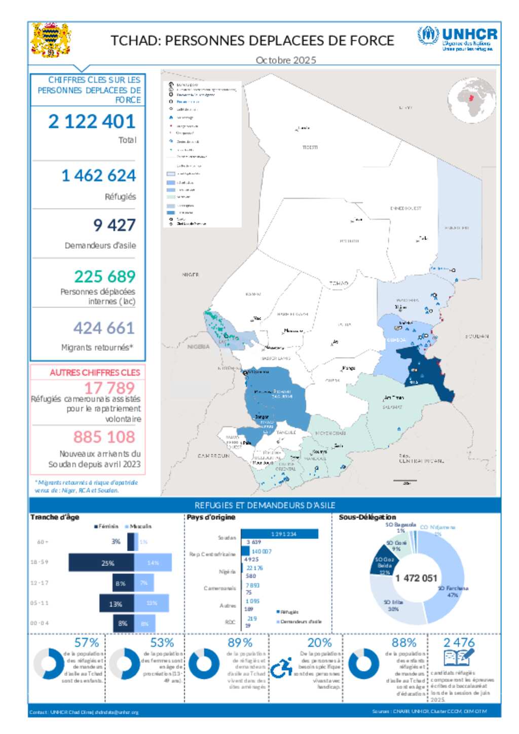 UNHCR TCHAD| Population des personnes en déplacement forcé au Tchad (Octobre 2025)