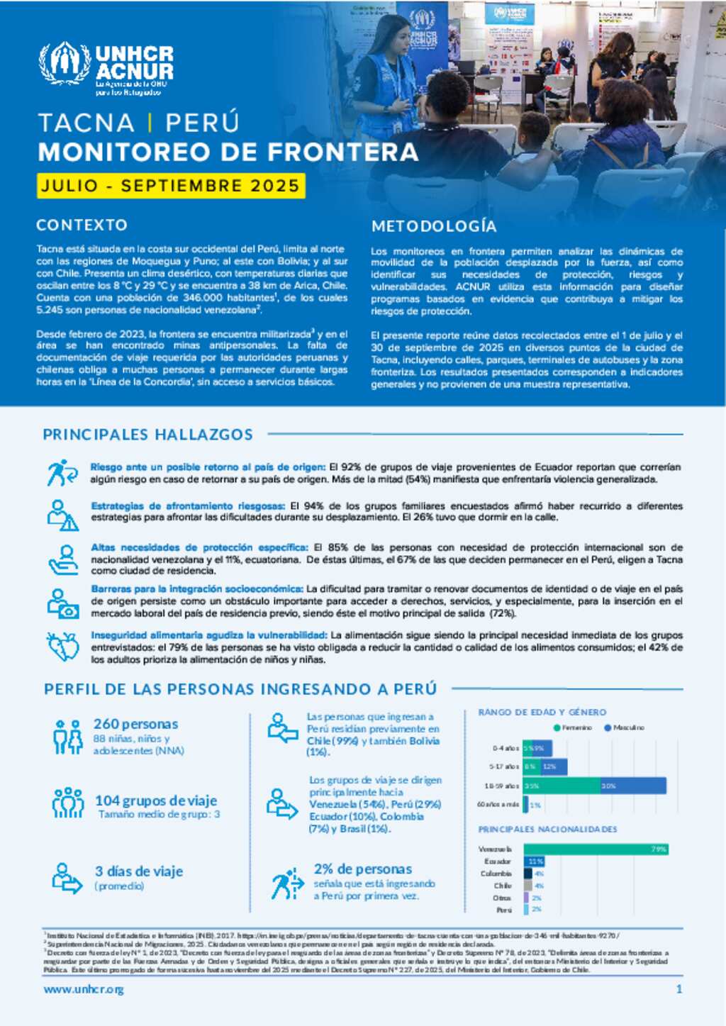 Monitoreo de Frontera Tacna, Perú: Julio - Septiembre 2025