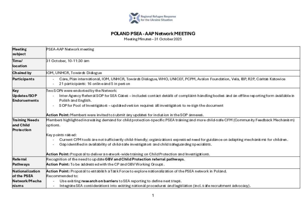 Poland: PSEA - AAP Network meeting minutes (31 October 2025)