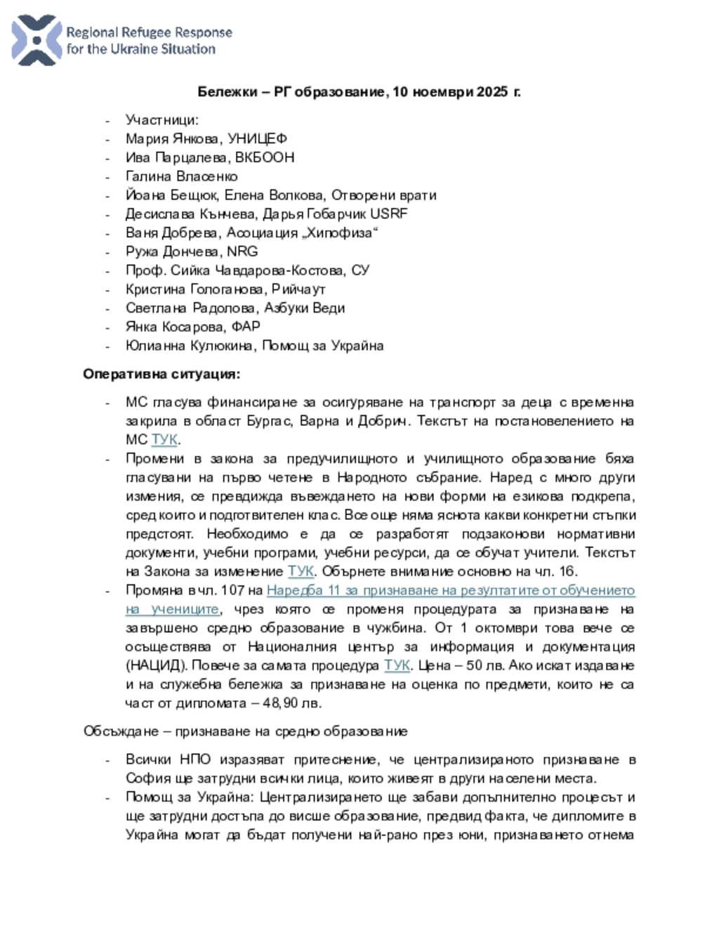 Bulgaria - Education Working Group Meeting Minutes - 10/11/2025 - Bulgarian