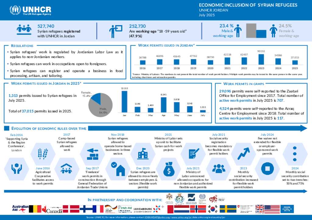 Jordan: Livelihoods Dashboard (ECONOMIC INCLUSION OF SYRIAN REFUGEES) for July 2025