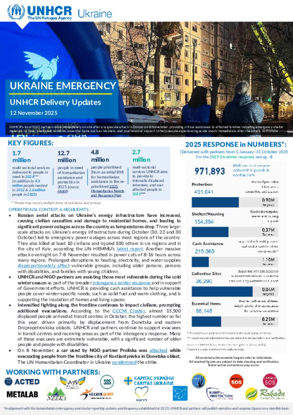 UNHCR Ukraine Delivery Updates - 12 November 2025