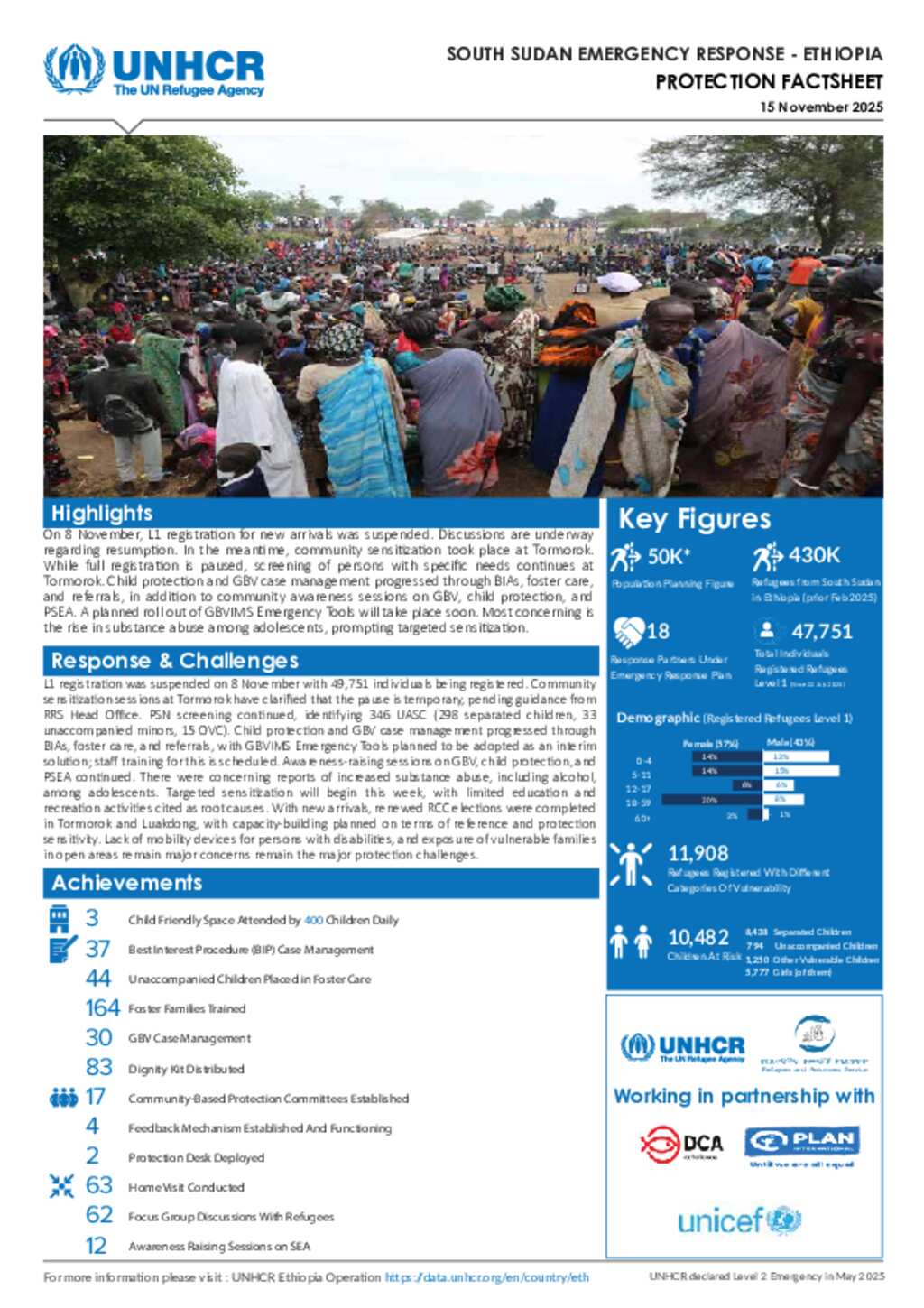 UNHCR Ethiopia | Thematic Factsheet Protection | 15 November 2025