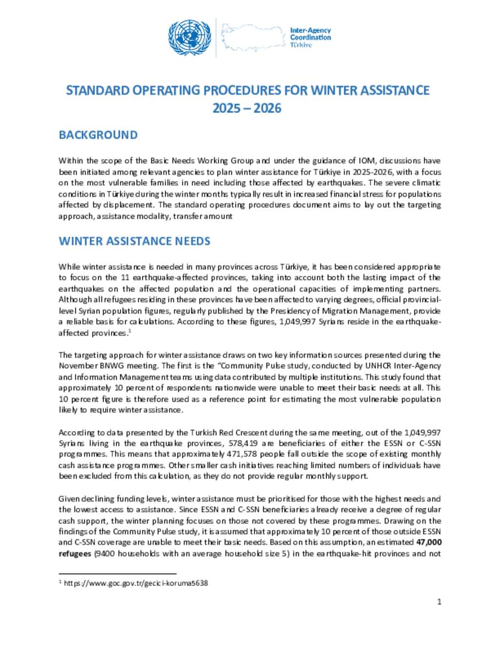 Türkiye: Winterisation Task Force - Standard Operating Procedures for Winter Assistance (2025 – 2026)
