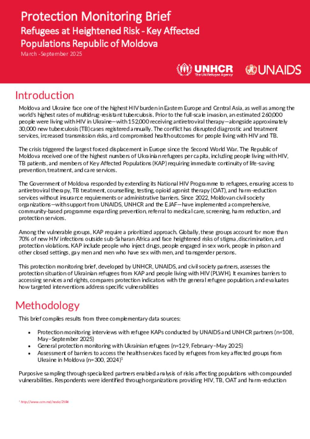 Ukraine Situation - Moldova : UNHCR - UNAIDS Protection Monitoring Brief September 2025 (ENG)