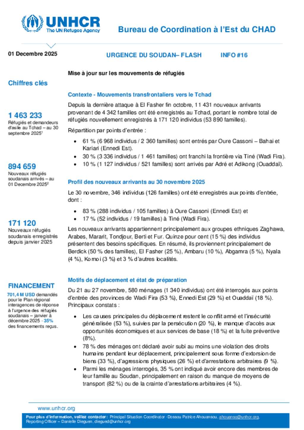 Flash Update #34 Nouvel afflux de réfugiés soudanais au Tchad