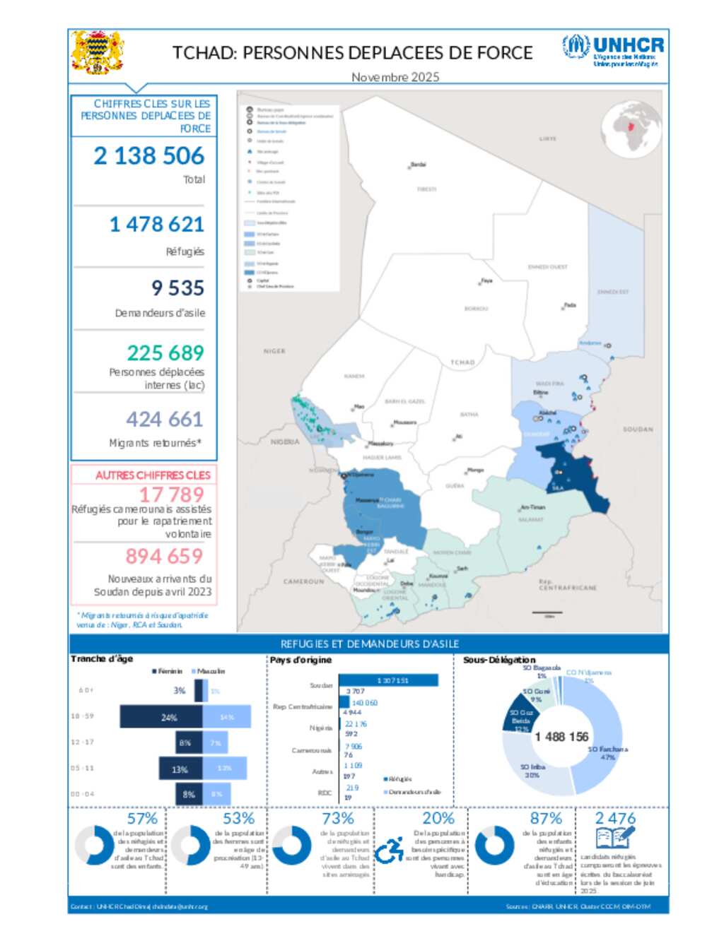 UNHCR TCHAD| Population des personnes en déplacement forcé au Tchad (Novembre 2025)