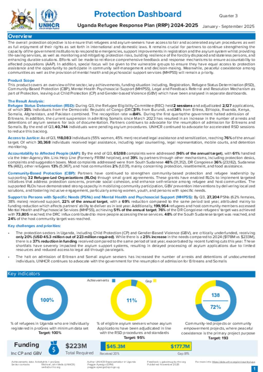 Uganda Refugee Response: Protection dashboard - Quarter 3 2025